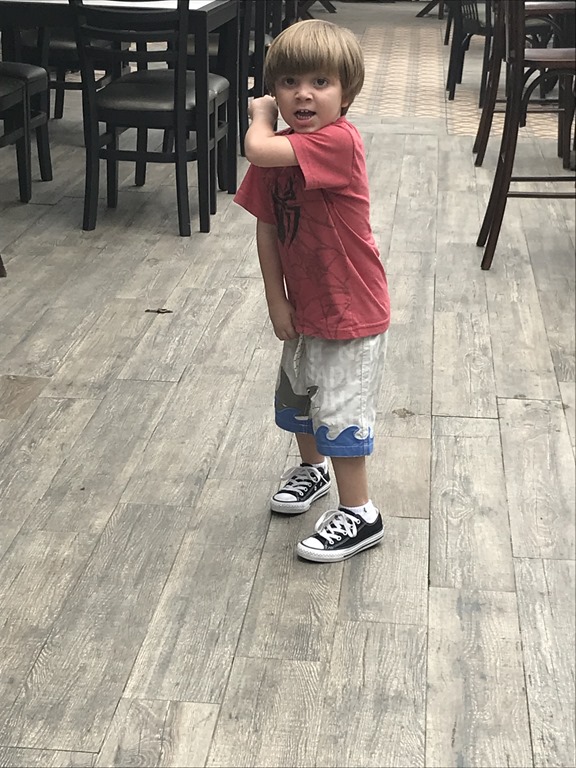 Of course, a couple of kids playing, the first had a superman cape on and the second had a spiderman shirt.  Guess superheros are big here!