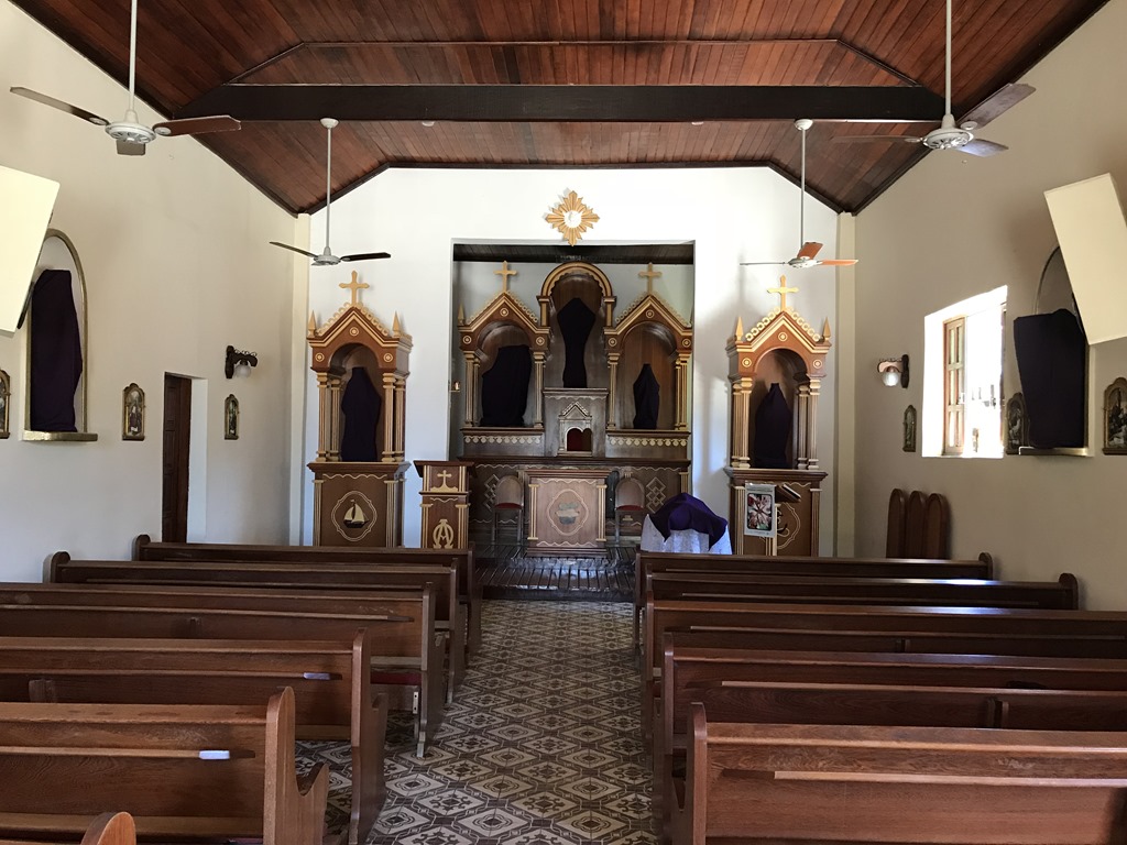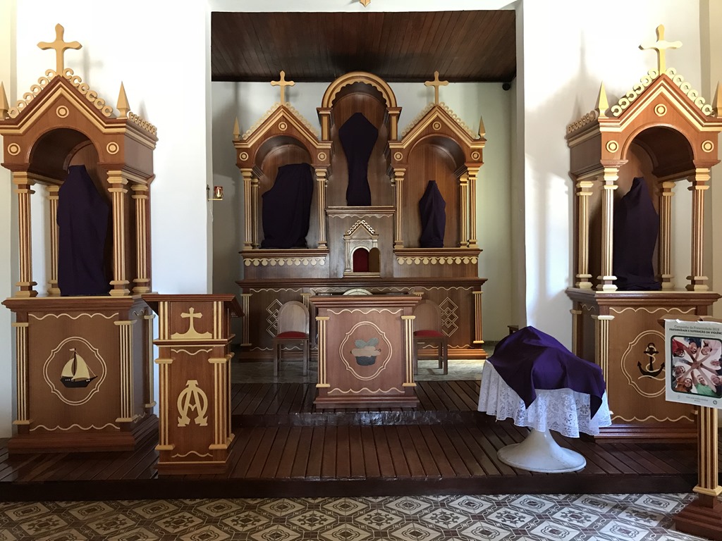 Before returning to the ship we walked around the town and into the small church where the statues were all covered because it is Good Friday.