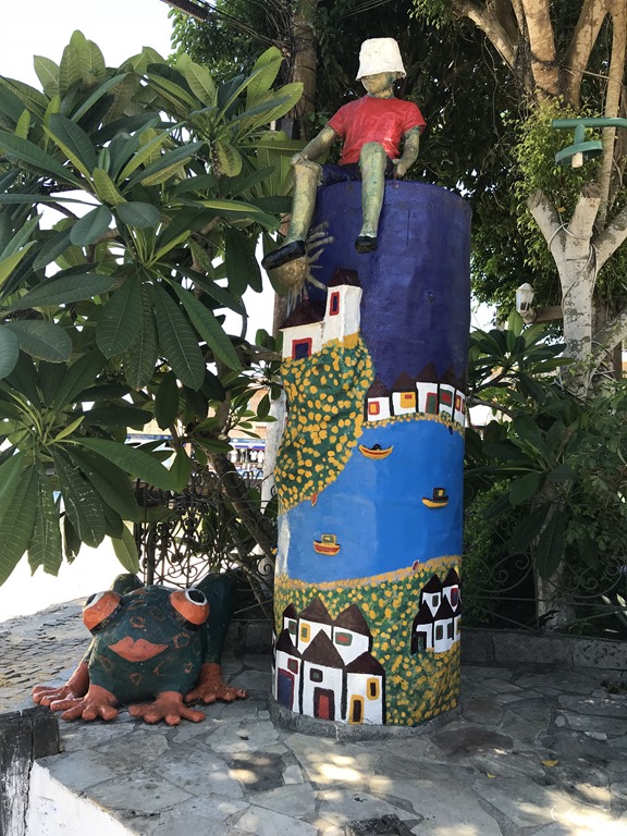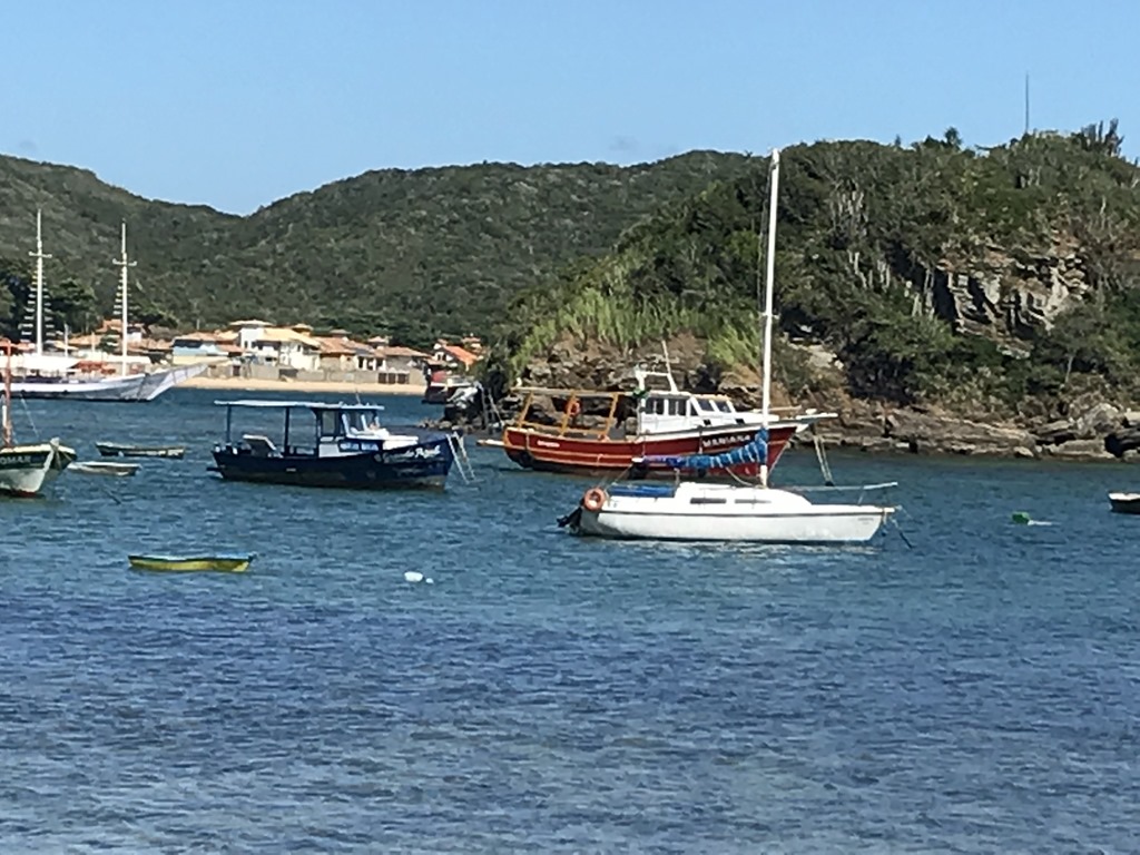 Today we are at anchor at Buzios, Brazil. It is considered the St. Tropez of Brazil because it is reminiscent of the French Riviera. It gained international fame when Brigitte Bardot vacationed here in the 1960’s and was photographed on the beach. Now you see a bronze statue of her along the Orlat Bardot Boardwalk, which is a stone sidewalk that extends along the beach.