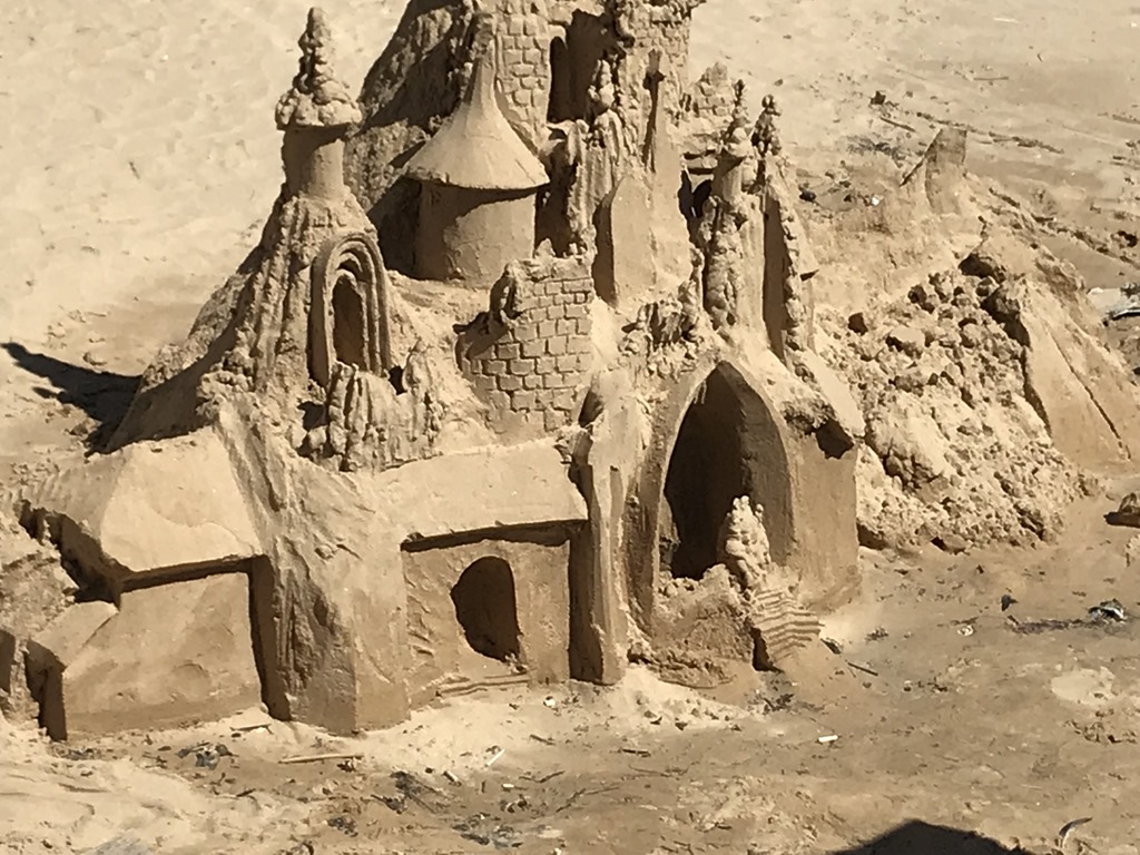 Here’s a sculpture of fishermen, when we arrived it was low tide, later after our walk the tide had come in. And some tourists went out for a picture with them.