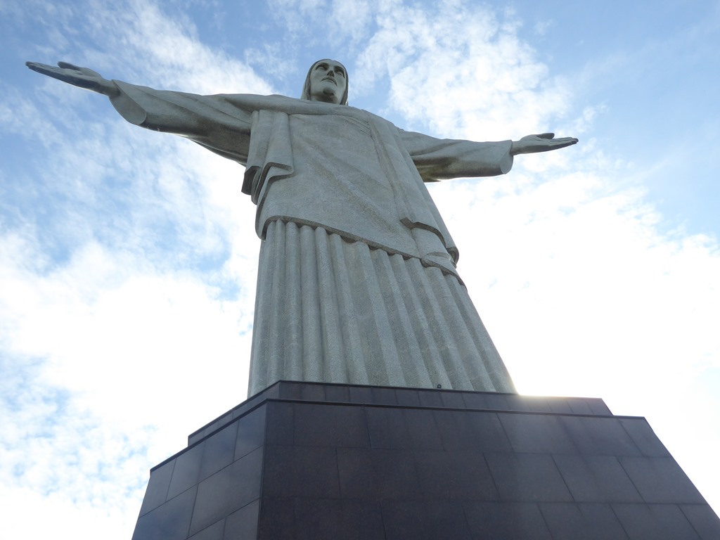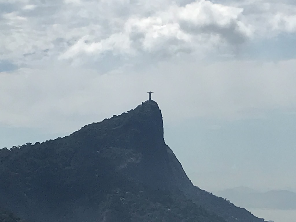 We then took a drive to Tijuca Forest which is a 47 square mile sanctuary away from the city. It was cut down in the 19th century to make way for coffee plantations but was reforested beginning in the late 1800’s. This included the planting of more than 100,000 trees. We took a cog train up the mountain – Corcovado – which means Hunchback Mountain. The railway opened in 1884 and passes through 2.5 miles of the Tijuca National Park. Our destination was the amazing Christ the Redeemer statue which overlooks Rio. It was constructed on the mountain and completed in 1931. It is 120 feet high and weighs 700 tons. It is the largest art deco statue in the world and one of the 7 modern wonders of the world. Only the head and hands were made separately and attached after the statue was complete. When you get off of the train there is an elevator and an escalator that takes you to the statue. Again, the views are wonderful.