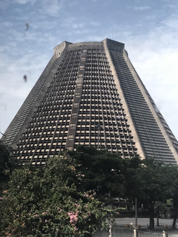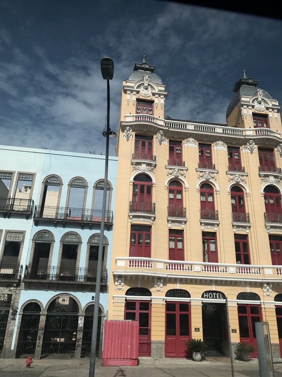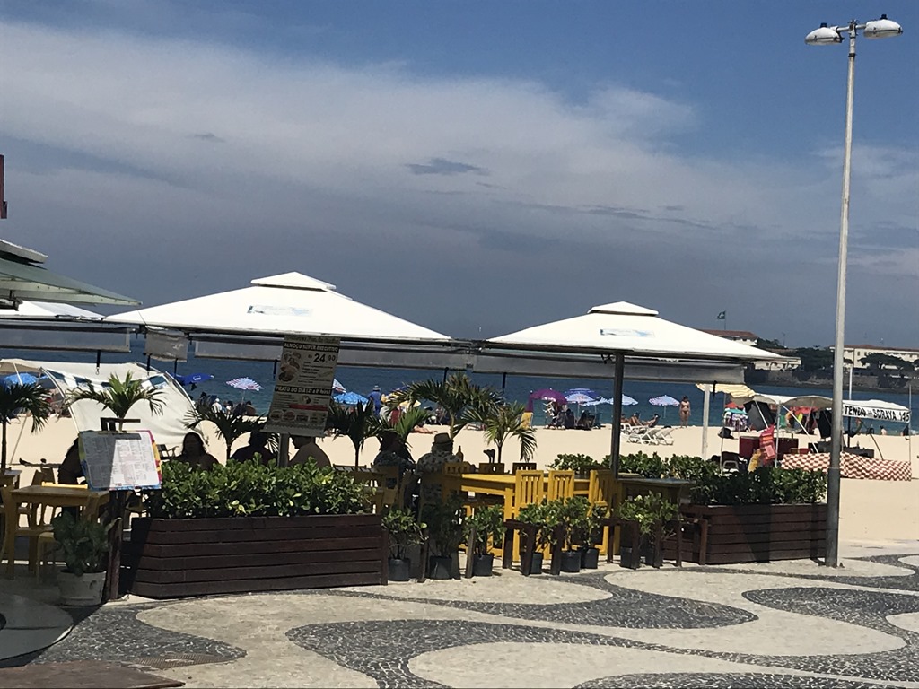 Today we didn’t have a tour booked. Gabe Hazan, a man we met on board, has a lovely beautiful jewelry store in Rio and when I told him I wanted to get my nails done in the city, he arranged for his driver to pick us up at the port and take us to the shop where his wife, Vanessa had made an appointment for me. There was a big line of people getting off the ship as it was changeover day and only 84 of the passengers are going to Miami so the rest were getting off to return home. We will have 600 new passengers embarking, so it is a good day to stay off the ship! We did get off in time for him to take us to the shop for my 10:30 appointment where we waited for a while and then were told that the manicurist called in sick! So the driver came around for us again and took us to Hazan where we had drinks and snacks. Vanessa made a 2:00 appointment for me at another shop and we decided to go to see the Copacabana Plaza hotel which is right next to Gabe’s shop. We had a lovely lunch by the pool. We had fast wifi and backed up our devices while we ate.