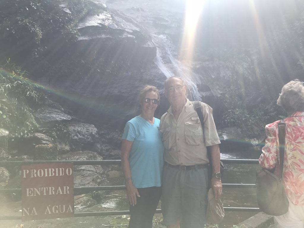 We headed down the mountain to the Botanical Gardens which was inaugurated in 1808 by King Dom Joao. We had a leisurely walk through the gardens, the orchid house and among the 90 foot royal palms. This garden is half natural jungle and half gardens. We saw many varieties of plants and trees. We also learned about the butterflies that need salt and there is not much in the forests to they will land on us for the sweat.