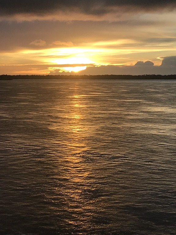 We again saw some dolphins but they are too quick for pictures and also don’t surface the way our Atlantic dolphins do.  The reason for the pink color of the pink dolphins is that the blood vessels that run beneath their skin, which is thinner than that of ocean dolphins, are close to the surface.  When they become happy or nervous, their color can change similar to when a human blushes.  These dolphins are highly intelligent with brain capacities said to be larger than that of humans.