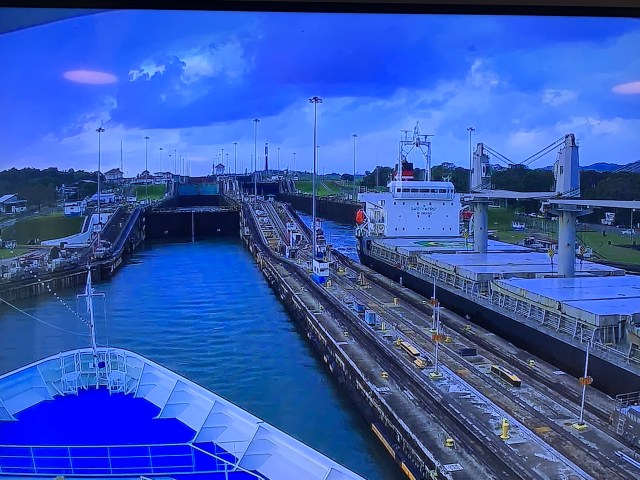 This is our third time in the Panama Canal and it never disappoints! We arrived at the Gatun Locks at 7:30 AM and the narration began. We had a local historian who kept us up to date all through the voyage.