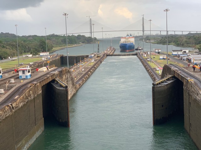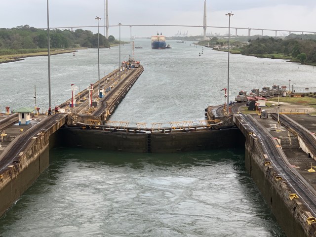 At about 2:30, we passed through the second set of locks, the Pedro Miguel Locks. It takes about 30 – 60 minutes to pass through the locks.