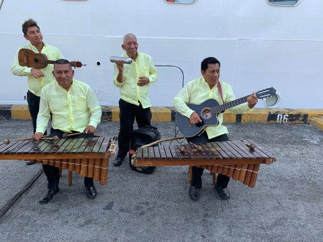 Nicaraguan culture has strong folklore, music and religious traditions and is deeply influenced by both European and Amerindian sounds and flavors. Lots of music was playing in the square and outside the ship. It is quite a poor country but we saw no begging or apparent homeless people here.
