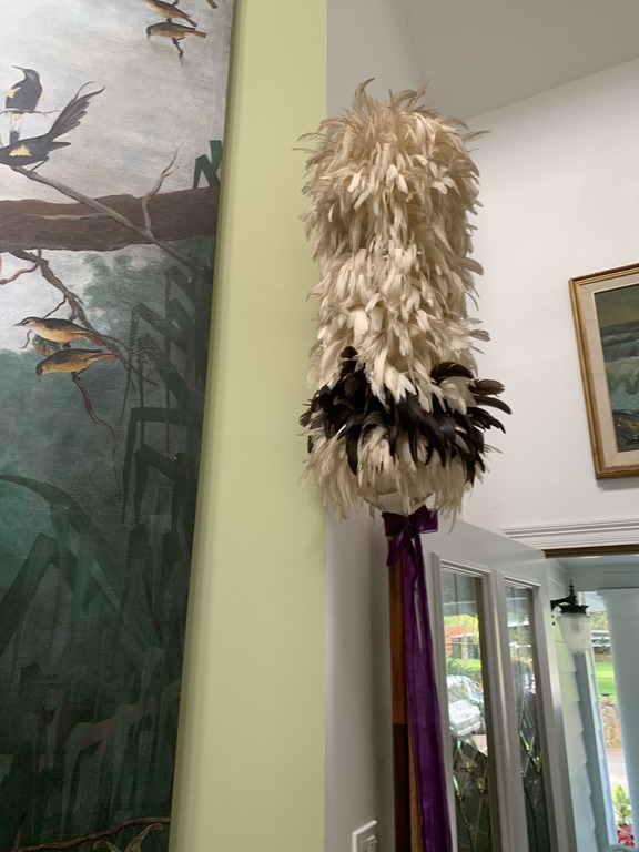 This is the large kahili, a feathered staff used in processions with former Hawaiian royalty.  They were up to 30 feet high.  In Hawaiian culture if you stepped on the king’s shadow you were killed immediately.