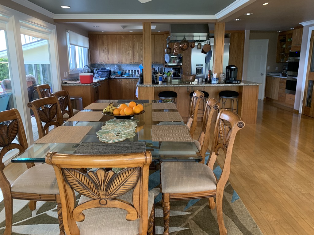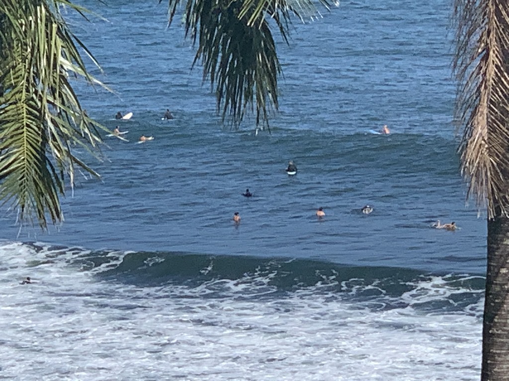 Then it was on to the last house for dessert.  This home also has a beautiful view.  It is a 5300 square foot home with just Bernie, his wife and his dog Morgan living there. The beach just below his house is a big surfing destination and we enjoyed watching them while eating our dessert.