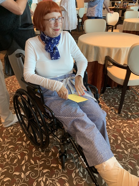 I am writing this on Friday – we had a “welcome home” party for fellow traveler Sukey at 11 today – we met her on the 2015 world cruise.  She broke her leg in Mexico, got back on the ship, was seen by the ship doctor and one in Mexico, left the ship in Los Angeles for surgery and came back in Honolulu to finish the world cruise with us.  What better place to recuperate.