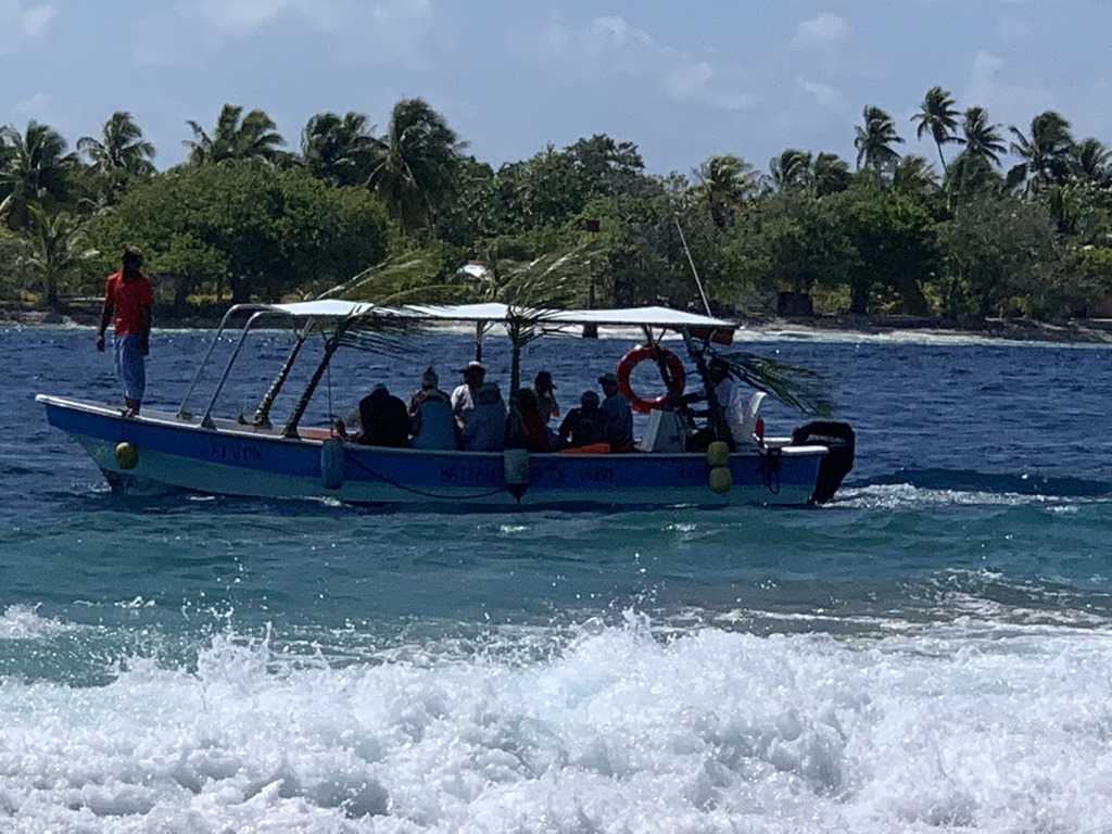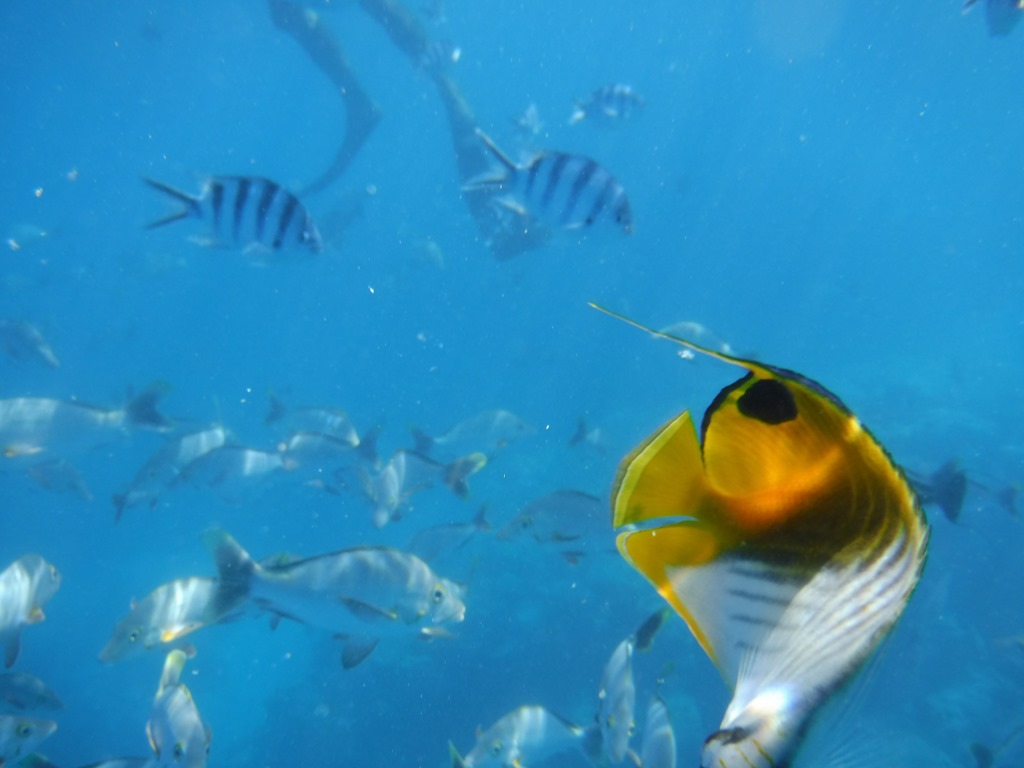 We had a wonderful time. Norm got a new underwater camera (thanks, Doc, for the recommendation!) So I didn’t even bring my Go Pro this time. Our guide fed the fish and they were everywhere around us. I counted at least 15 different species. Unfortunately the two crew didn’t speak English so we didn’t get the names of all of them. But we know angelfish, clown fish, surgeon fish and needlefish for sure. The coral is in good shape – not as colorful as others we have seen but still beautiful.