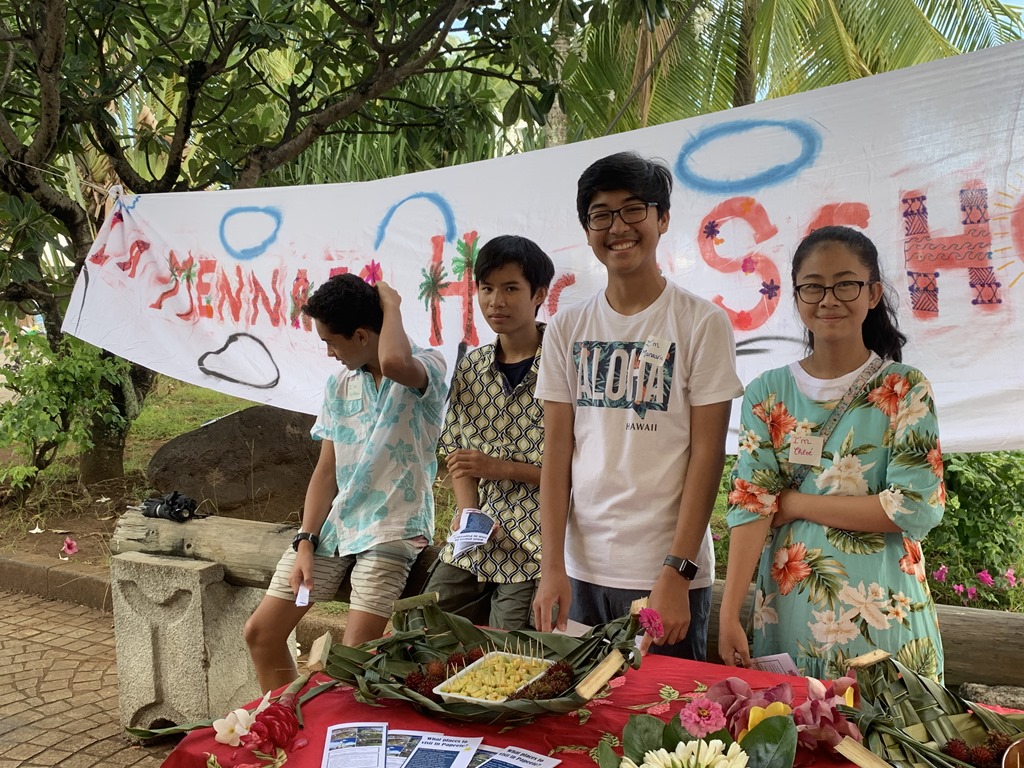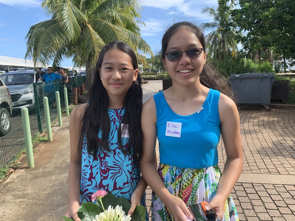 Then we were greeted by a whole group of 8th graders from Mennais Junior High School. They have been studying English for 3 years and are doing a class project welcoming tourists and guiding them to several places to visit. Most seemed quite shy but eager to practice their English. They had a brochure that they made about local attractions and local fruits to sample. I spent a bit of time talking to them and their teacher.