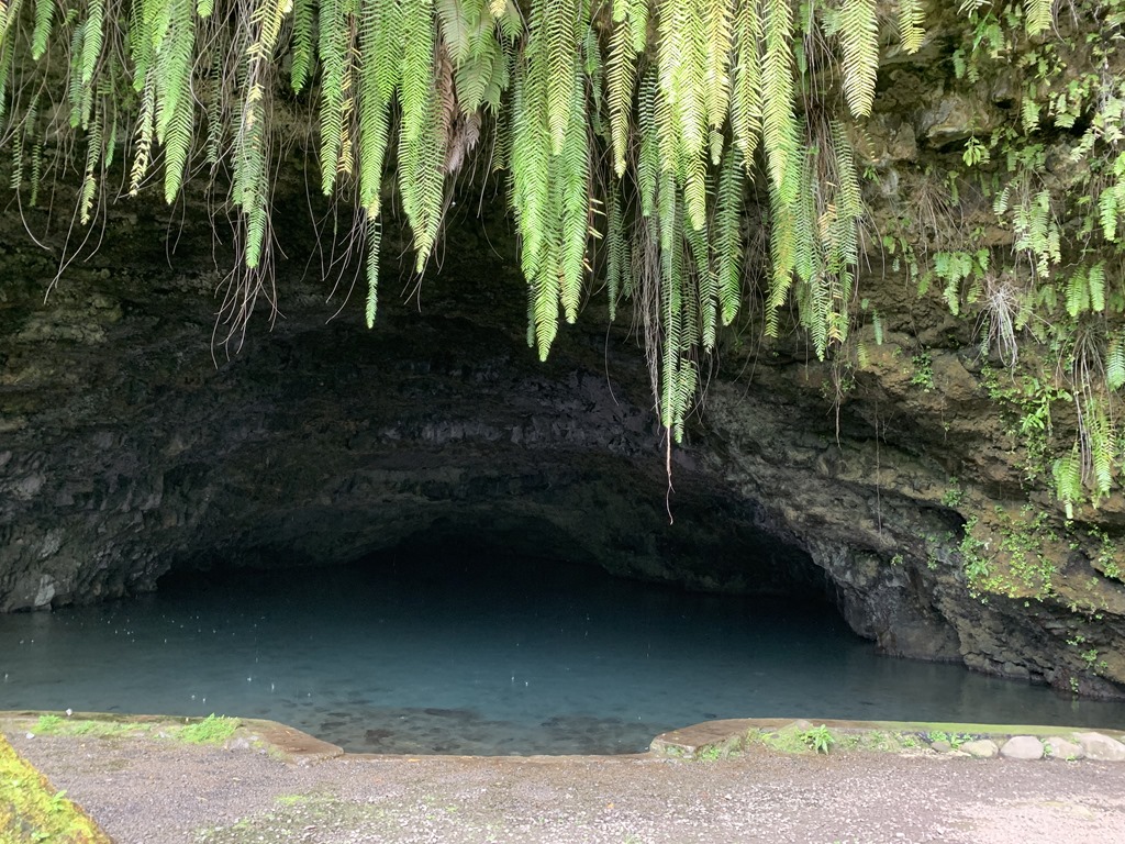 There is a large blowhole near the waterfall stop. Tom told us the myth of this Arahoho Blowhole. The story goes that Queen sat down on it and went “ahhhh” and that is the sound you hear. I do have video but too large to load. When the sound is made, the sea mist comes up through the hole.