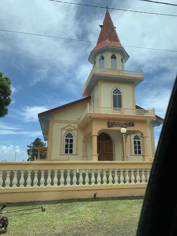 The views along the way were beautiful as the road around the island is between the sea and the mountains all the way. We also passed some pretty churches. Tom said the country is mostly Protestant.