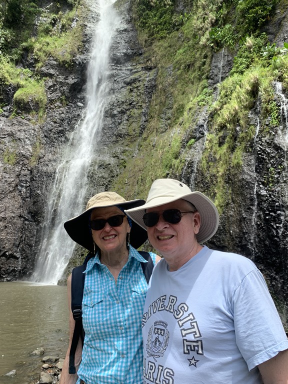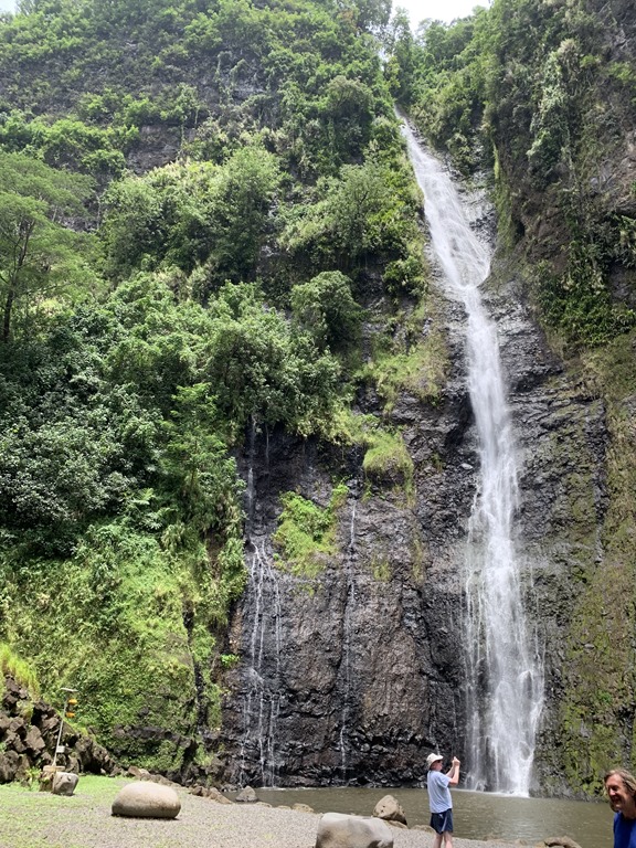 We visited the Fautaua Waterfall, one of the tallest in the world. The water falls about 980 feet into a large pool below.