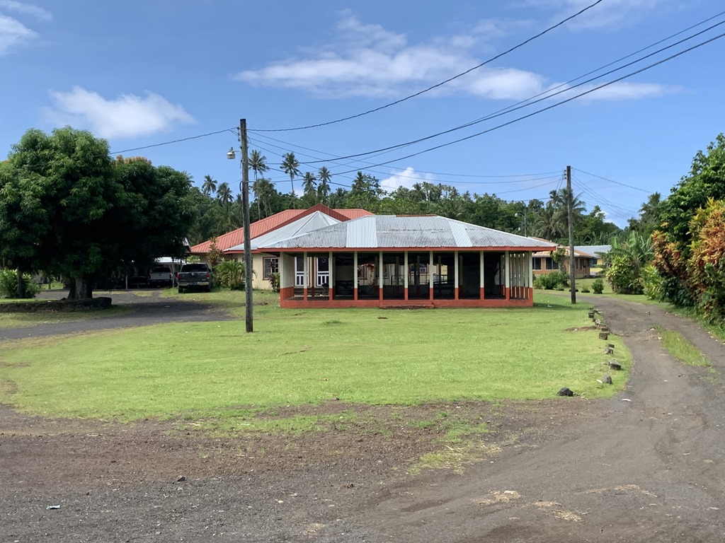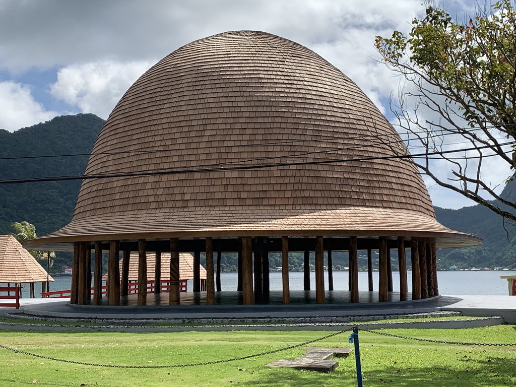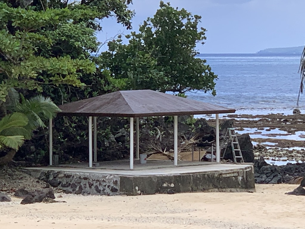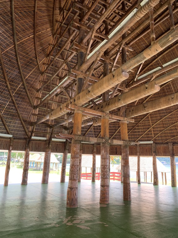 There are guest houses called “fale” that look like large gazebos where people entertain visitors or hold ceremonies like weddings. They are open and without walls to symbolize the villagers’ unrestricted culture. We saw many different styles. The first one is a ceremonial one with impressive carved columns.