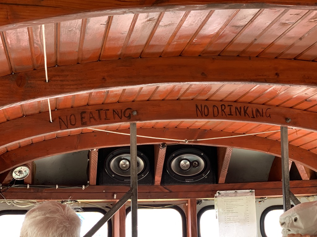 So, we set off on our adventure.  We immediately noticed the no drinking, no eating inscription which was written at the front of the bus.  Jubilee told us “don’t worry about that – it is for locals!”