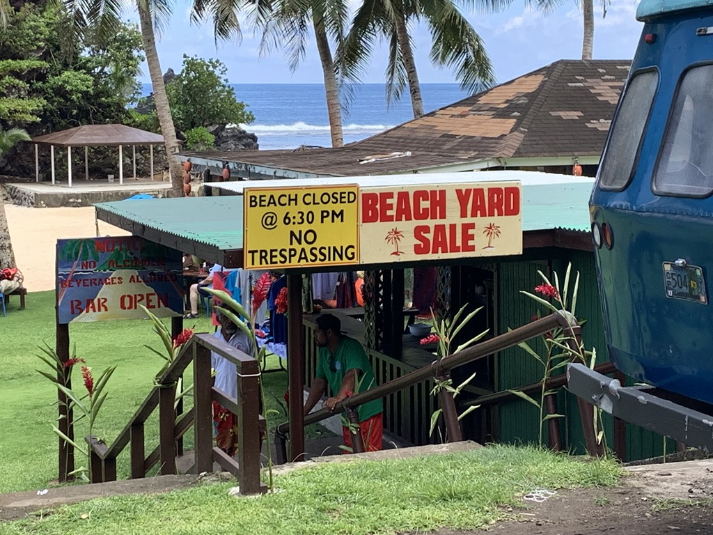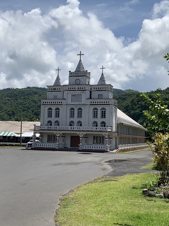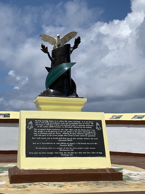 Jubilee told us of the earthquake and tsunami that happened on 9/29/09.  60 people died and he said if it had happened at night more would have died.  We stopped at the Leone Mission Monument that marks the contribution of Reverend John Williams who landed here in 1832 and began spreading Christianity.  The island is predominantly Christian and we passed MANY churches.