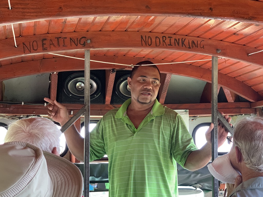 We headed back around the bay. As Jubilee saw people walking he offered them rides back to the ship for $5. We picked up about 6 more passengers. Curiously, there are two places named for Ronald Reagan.