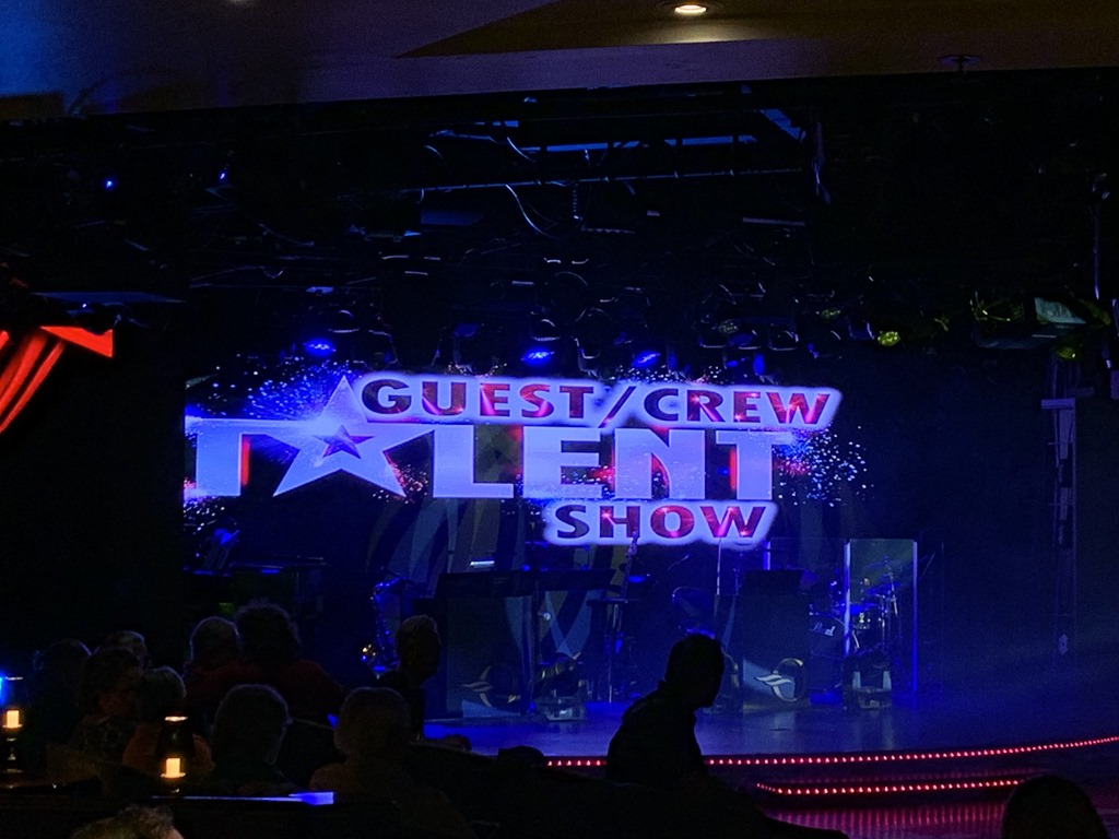 Last night we had the guest – crew talent show. The theater was packed and it was a really fun night. Among the guests there was a magician, a couple of singers, a trumpet player, a harmonica player, a tango dancing couple, Hawaiian dancers, a story teller (great fun) and our Zorba dance closed out the show. One singer from the crew performed a Brazilian song and she was fantastic. I know that people took pictures and video of the Zorba so I will post when I get them.
