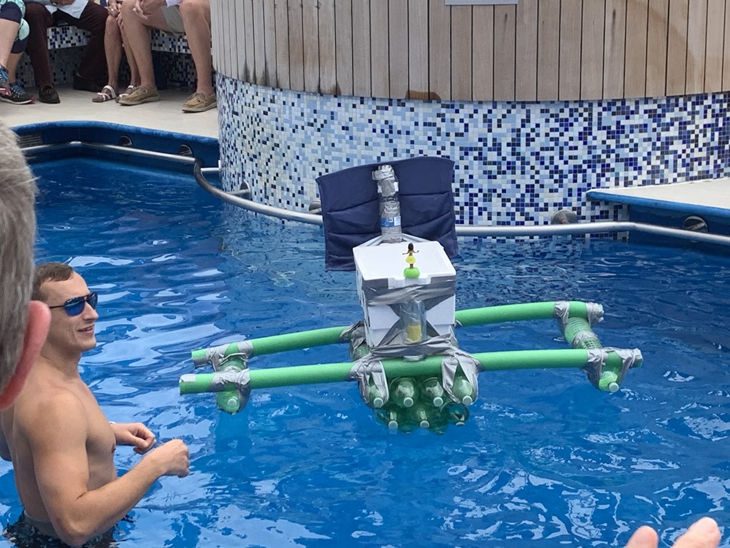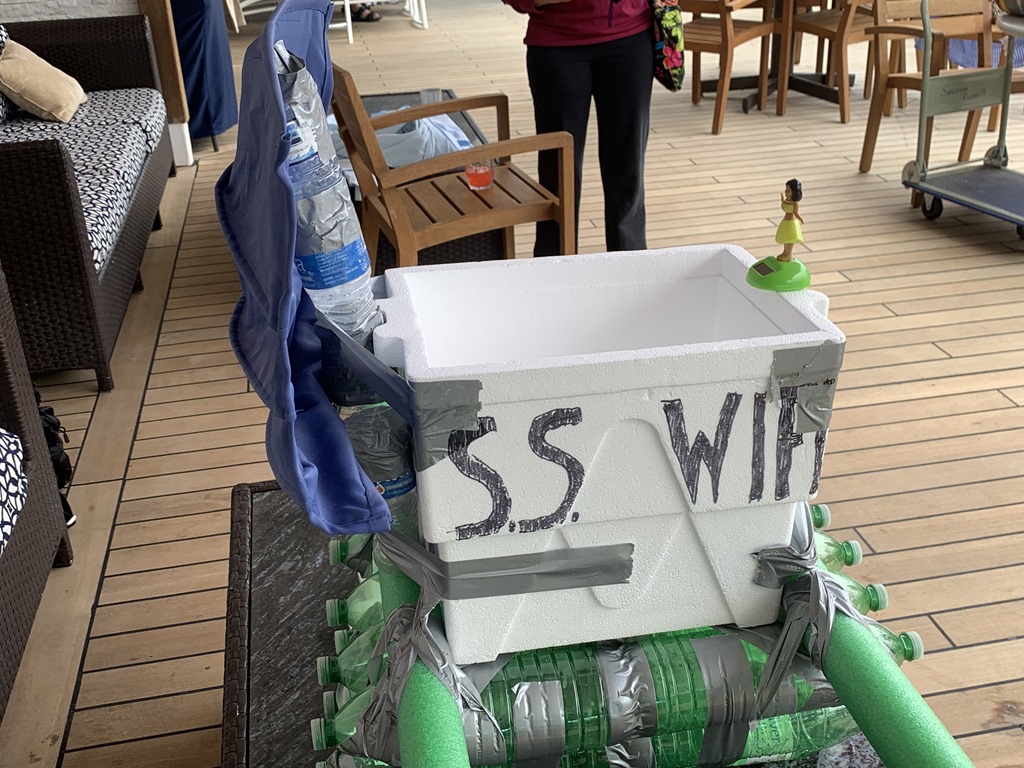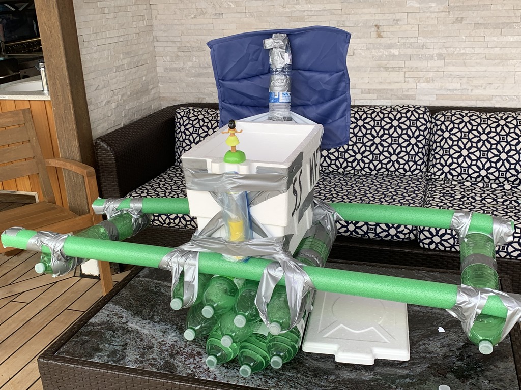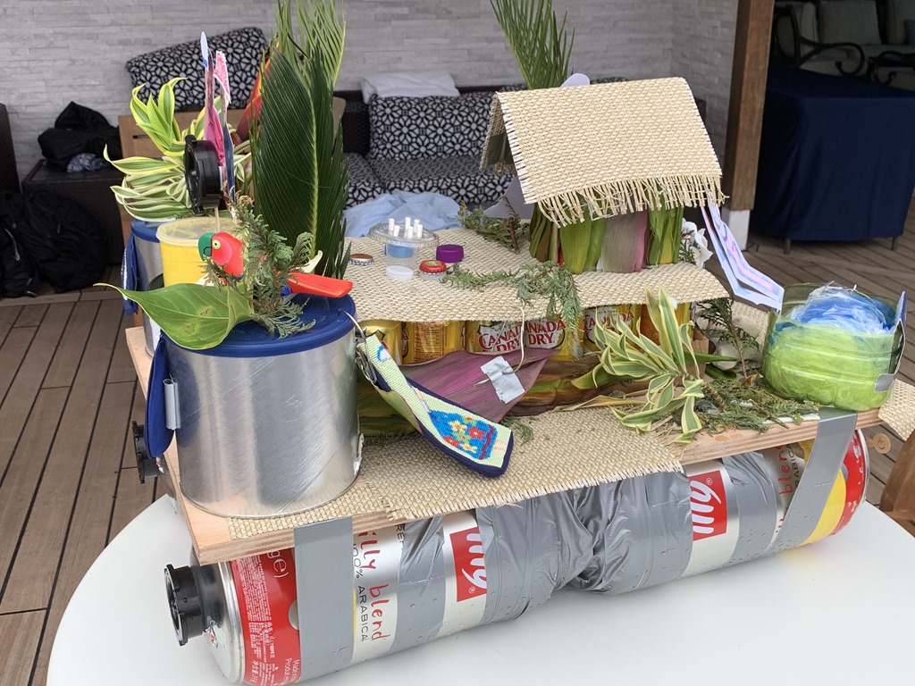 Today was the boat building competition that always happens a couple of times on a long cruise. There were three entries, two pretty serious entries and one not so much. Here they are: