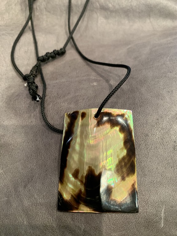 I won the blackjack tournament both yesterday and today. Lalo is trying to talk me into playing in the Texas hold’em tournament and I may just try it one day. Today, though, we had another jewelry making class with our Polynesian lecturer, June. We made this mother of pearl necklace, and the most challenging part was the knot tying to make the sliding cord that changes the length of the necklace.