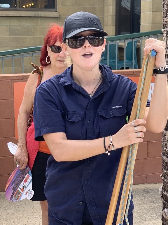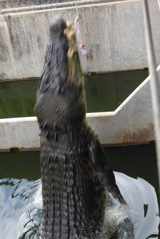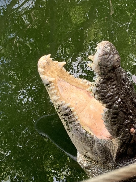 We were greeted by a guide who took us for the first part of the adventure, crocodile feeding. Basically, you held a large pole with a piece of chicken on the end of it and the crocodile would jump up to get the food. I had the chance to feed Mildred. Norm took a video which, again, I can’t post on the ship. Maybe one day I will try to post all of the videos from shore!