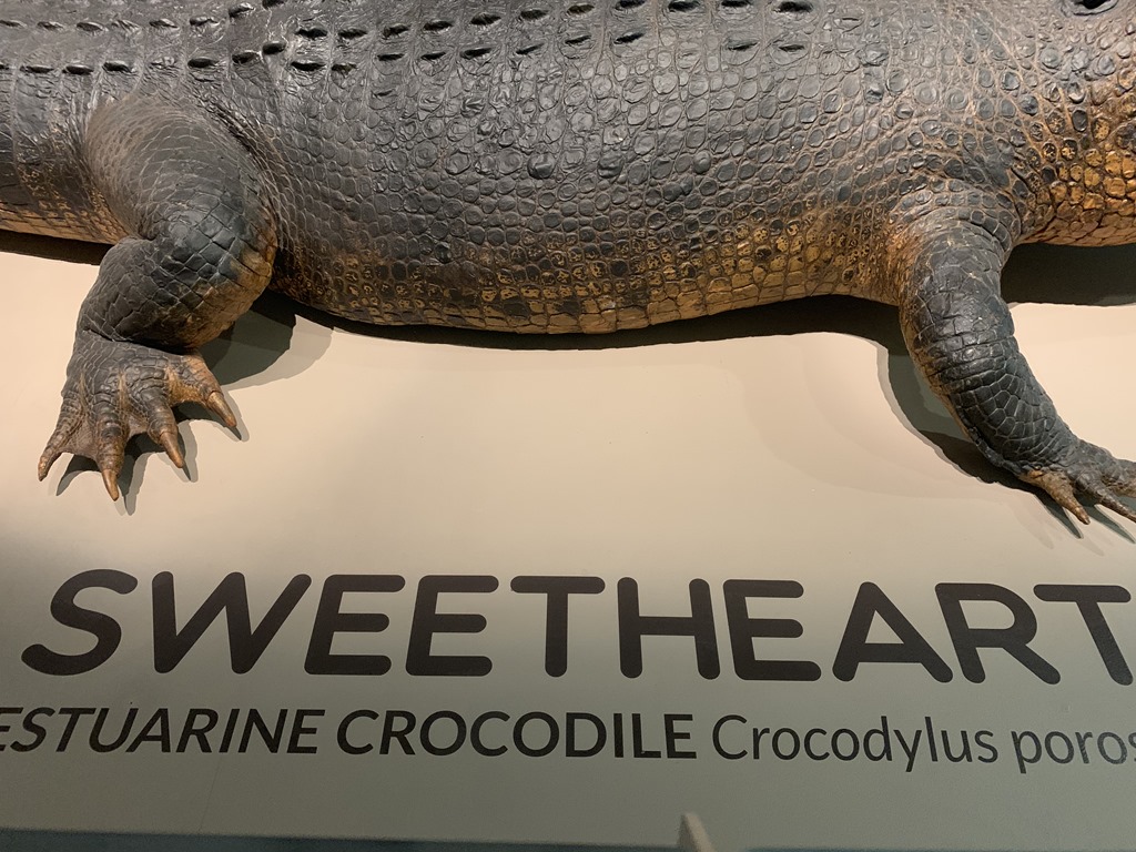 There was an exhibit of some of the boats, and also Sweetheart, one of the sort of friendly crocodiles, which suddenly died. I couldn’t even fit the whole thing in one picture!