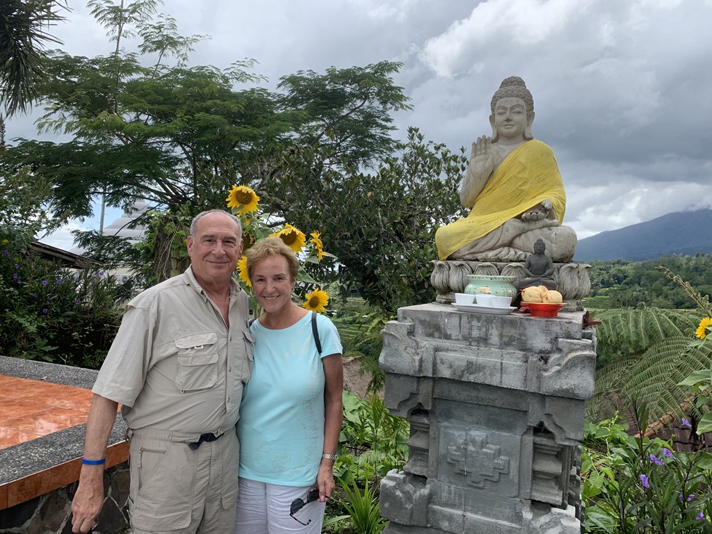 Since the ship didn’t get in until 11 and the traffic was so bad, Nyoman stopped for lunch at a restaurant overlooking a beautiful valley and rice fields. We had a delicious Indonesian lunch with rice pudding made from the black rice for dessert.
