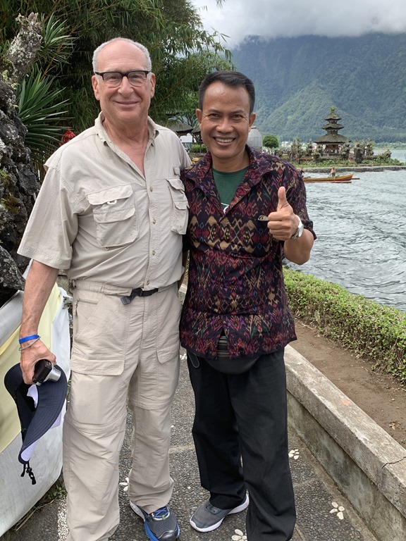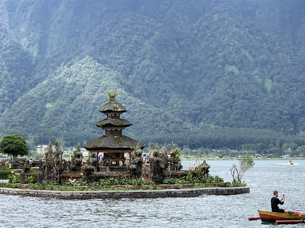 Our first temple visit was to the Ulun Danu Temple in Bedugul which is at an altitude of 4900 feet. This is a major water temple which serves the entire area. It is on a lake that is so beautiful with the green mountains in the background.