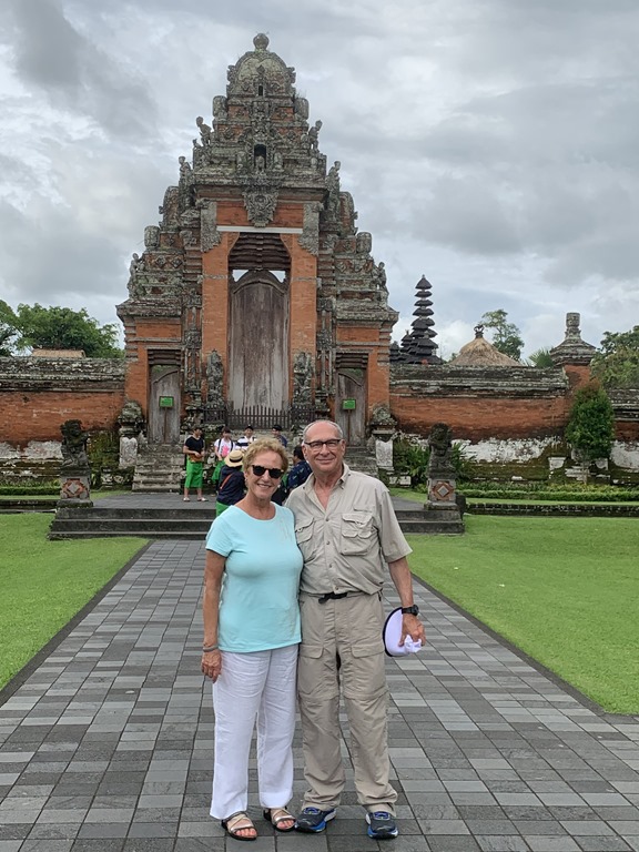 You may wonder about our long pants on a hot Indonesian day. It is expected that shoulders and legs are covered when entering temples. Most do have a kind of sarong that they lend you, but we chose to dress as expected when doing our visits. Indonesians do not wear shorts except for field workers and becak (a kind of bike taxi) drivers and they look down on people who do.