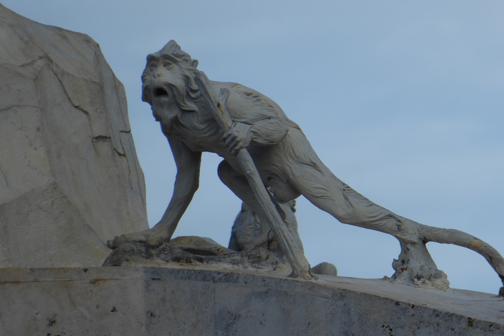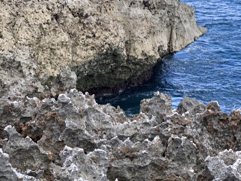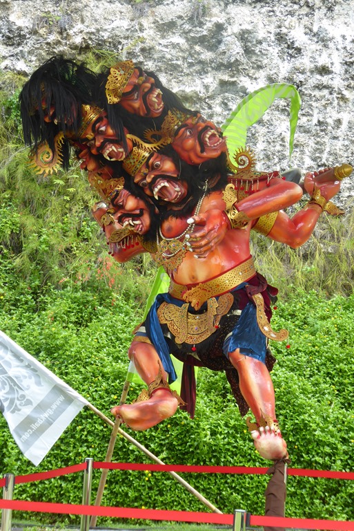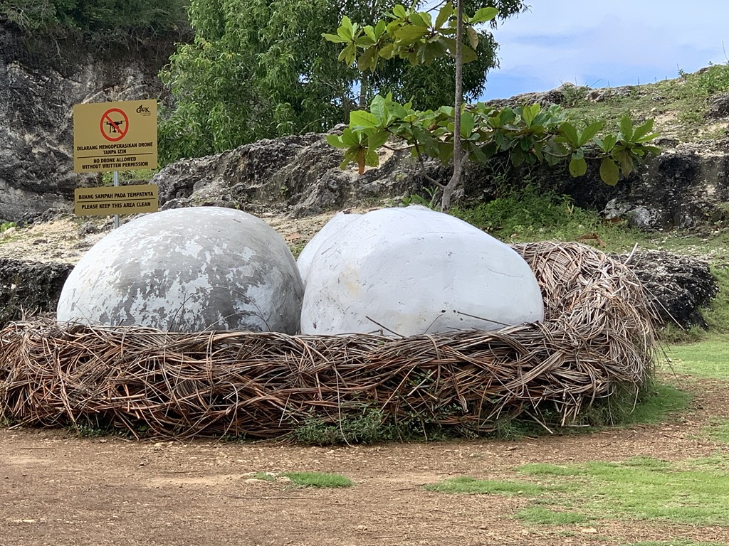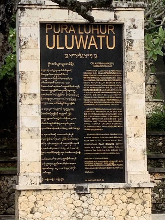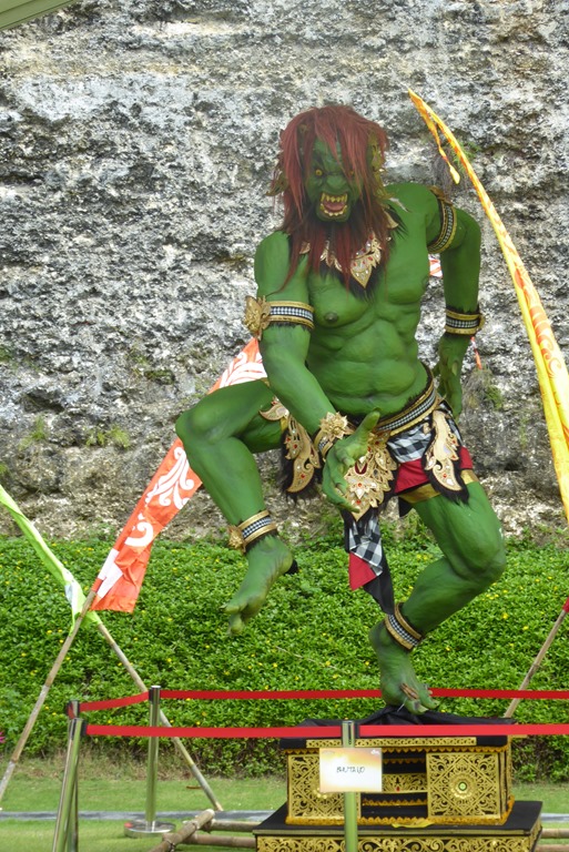 Last stop for the day was in the Nusa Dua area which is a high end beachfront area with luxury hotels and a golf course. There is a water spout area that is impressive when the waves are high, but that wasn’t the case today. The rocks are immense.