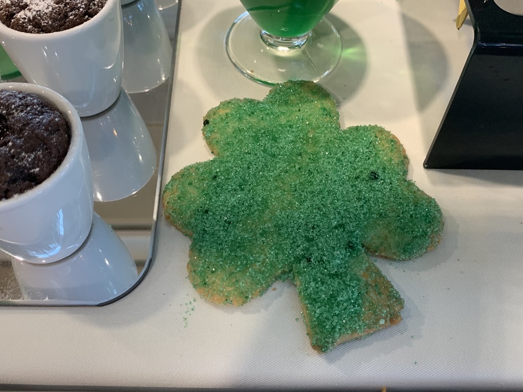 When we returned to the ship, we found lots of St. Patrick’s day decorations and goodies.. yes, they do honor all of the holidays here on board! By the time I took the picture, the top clover leaf had already been eaten!