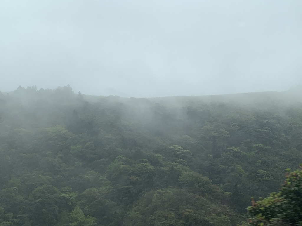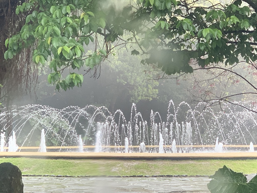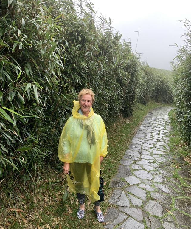 After that part of the park, we went to the area of the bubbling hot springs. It was pretty overcast still but you can see some of these hot springs in these next shots. There was also a long walkway with lush bamboo on both sides. How do you like the poncho??