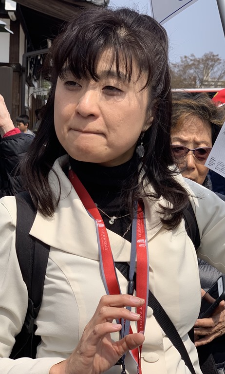 Our tour guide was Mari. She was both delightful and informative. Kyoto is 47 miles northeast of the cruise port so our bus ride was about 1 1/2 hours long. The bus driver had to take an alternate route due to an accident on the road. This gave Mari plenty of time to tell us about Kobe, Kyoto and Japanese traditions. We have learned a lot about Japan from our guides and from Becky who does the book club and Japanese culture discussions. More about that later, but first, here is what we did in Kyoto.