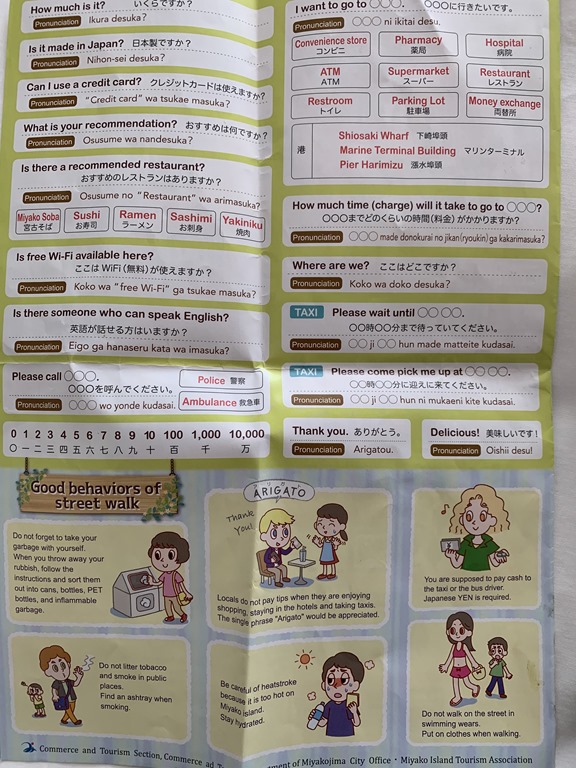 This first picture is the ticket into the castle. Beautiful! The second picture is a brochure we got in one port with very helpful English/Japanese phrases.