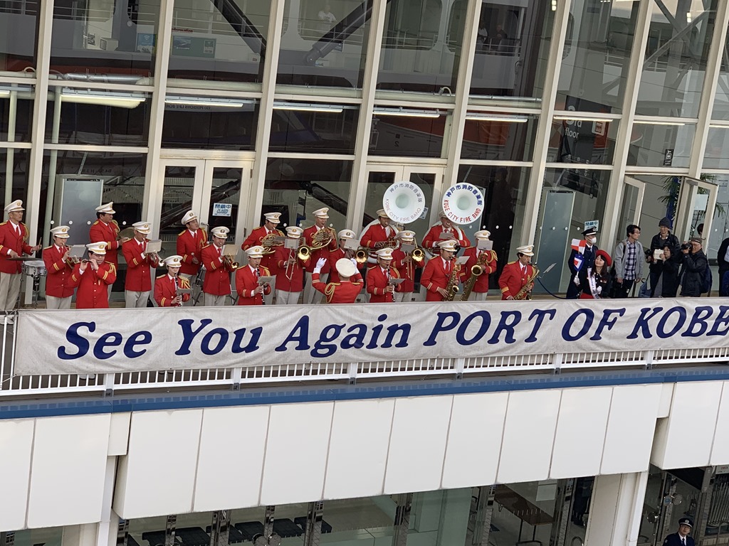 Our port today, Kobe, is the fifth largest city in Japan with a population of about 1.5 million people. It is where the famous Kobe beef is raised. It is also famous for good saki because of the quality of the water coming from the mountains. Many international corporations have their Japanese headquarters here, including Procter and Gamble, Asics, Nestle and Eli Lilly. It is a huge port. Here is a picture as we arrived.