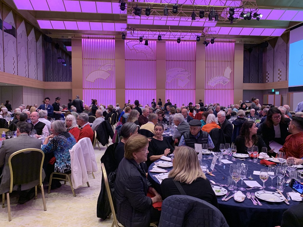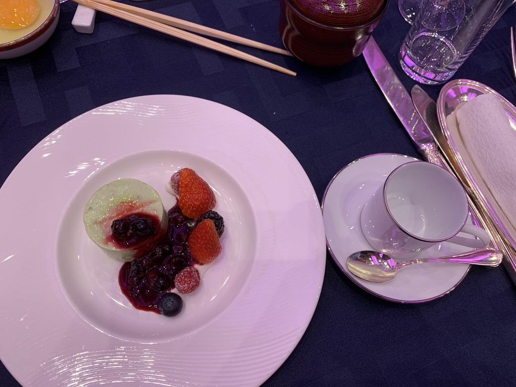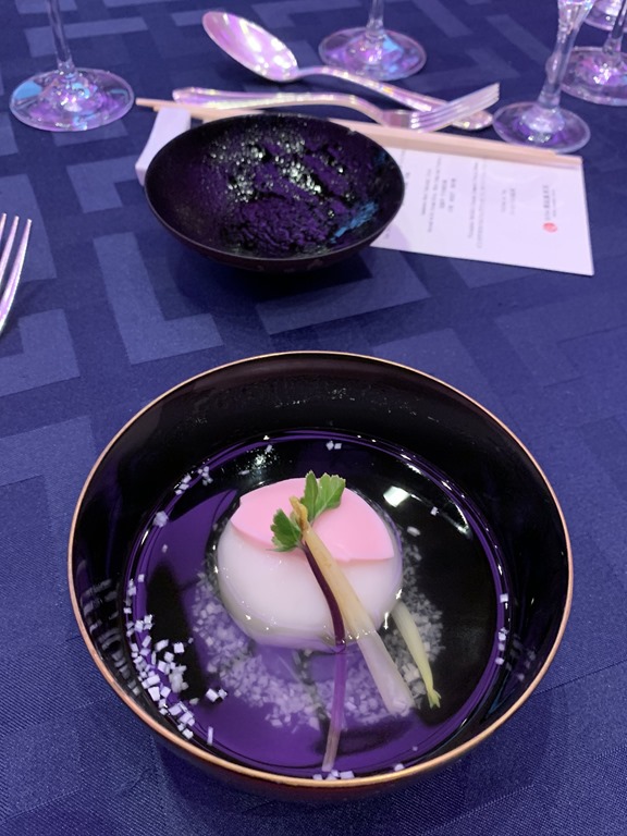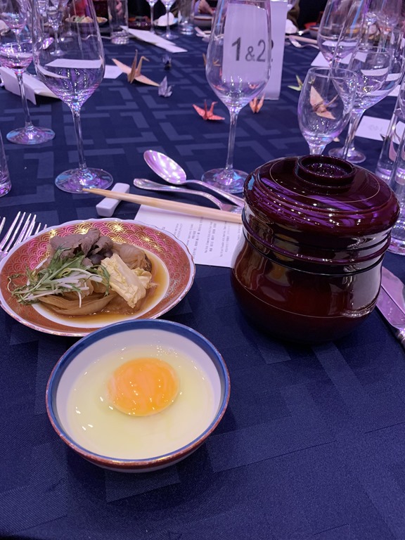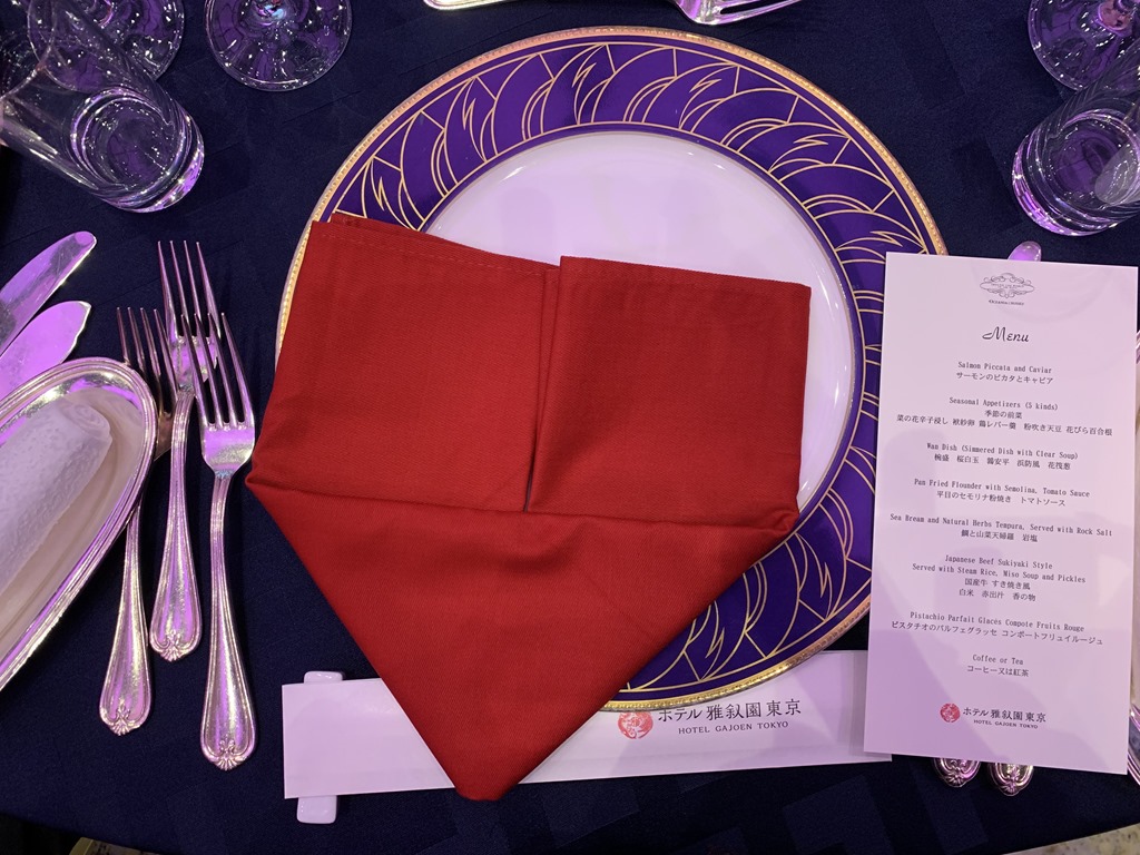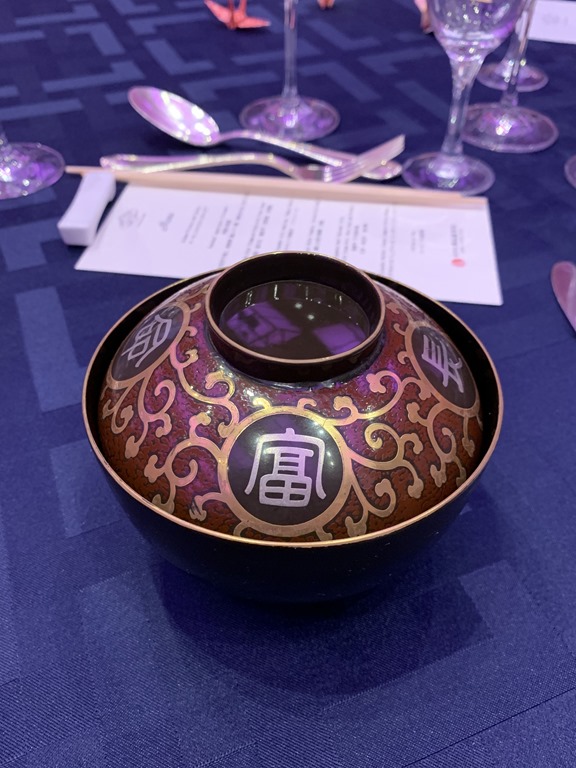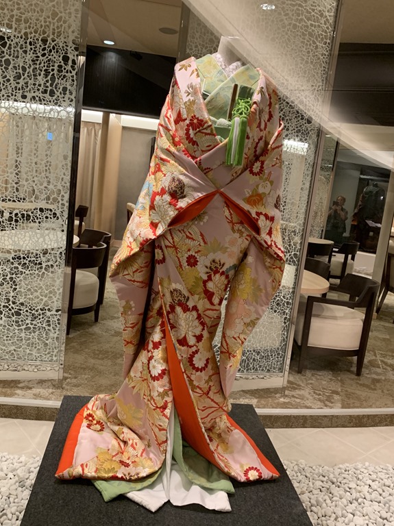 We had a wonderful Around the World special event tonight at the Hotel Gajoen Tokyo. It was a 30 minute bus ride to get there and we had a guide on the bus named Kitty. We passed the Olympic Village which is under construction for the 2020 Tokyo Olympics. There will be 10,000 condominium units built there and guess what – they are already sold to people who will move in after the Olympics. The village is very close to the port.