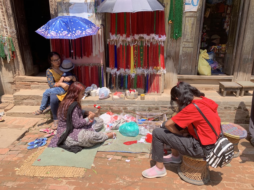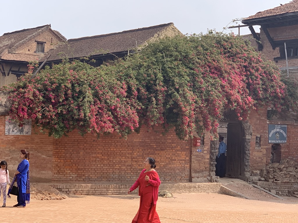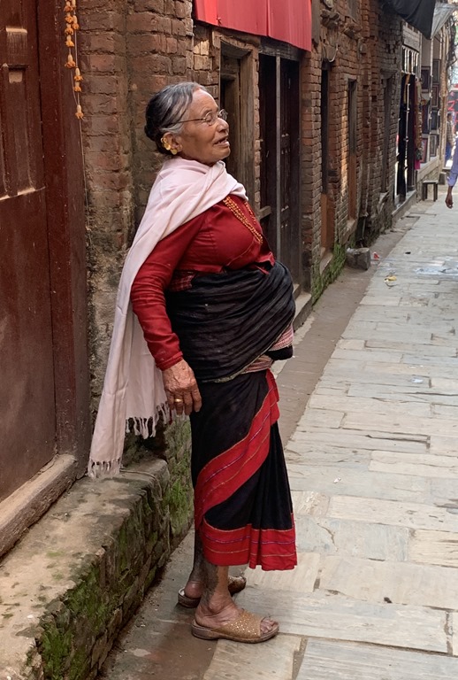 IMG_6363This is the traditional dress of the Newari (one of the ethnic groups) women, the red and black sari.  People are now wearing them a bit shorter, so this woman has tattoos on her legs below where the sari ends.  It is hard to see in this picture, Sagar says it is now common to see.