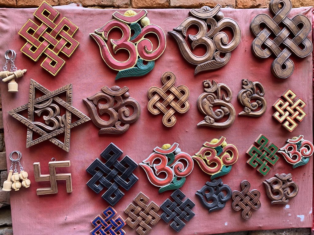 The other ones are the om, and the backward swastika, which in Buddhism symbolizes the footprints of the Buddha and nothing to do with Hitler’s use.