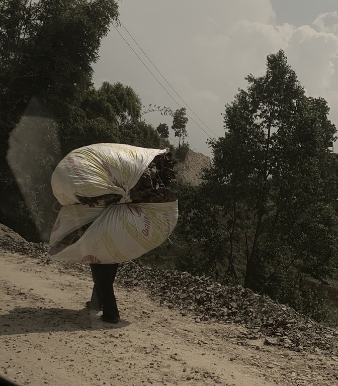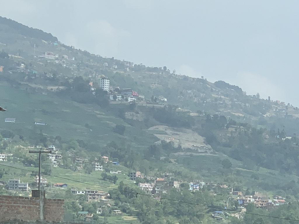 The pollution is quite bad  here, dust is part of that. We couldn’t really see the scenery well. There are lots of wheat fields, and both Bhaktapur and Nagarkot are farming areas.
