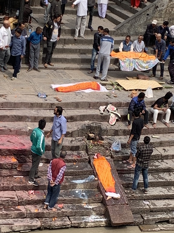 This Temple and the entire grounds is a World Heritage site. It is the site of cremation for Hindus. We witnessed the entire process of cremation from across the river. In Nepal you are allowed to take photos and videotape the cremation so we did both. To the Hindus, death is an important part of the journey of life so they do not object to people viewing the cremation. You are not allowed to film in India and also no women can attend in India at the Ganges river site, but they can attend in Nepal.