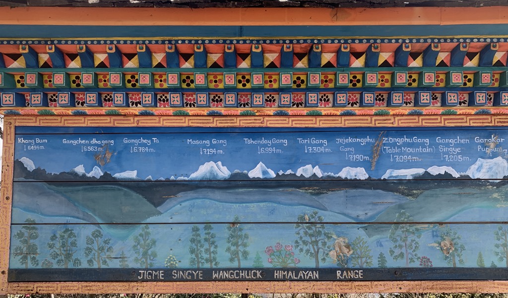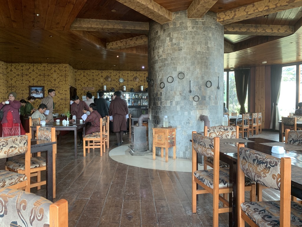 We reached the Dochula Pass in about 45 minutes.  This is the highest point of the road and definitely closes in the winter.  There was a wonderful view of the Himalayas from this viewpoint.  We were invited in to the small restaurant for tea and a snack.  There are 108 stupas built here in memory of the soldiers who were killed defending Bhutan from invaders in 2003. This was by order of the 4th King w who personally helped to build them.
