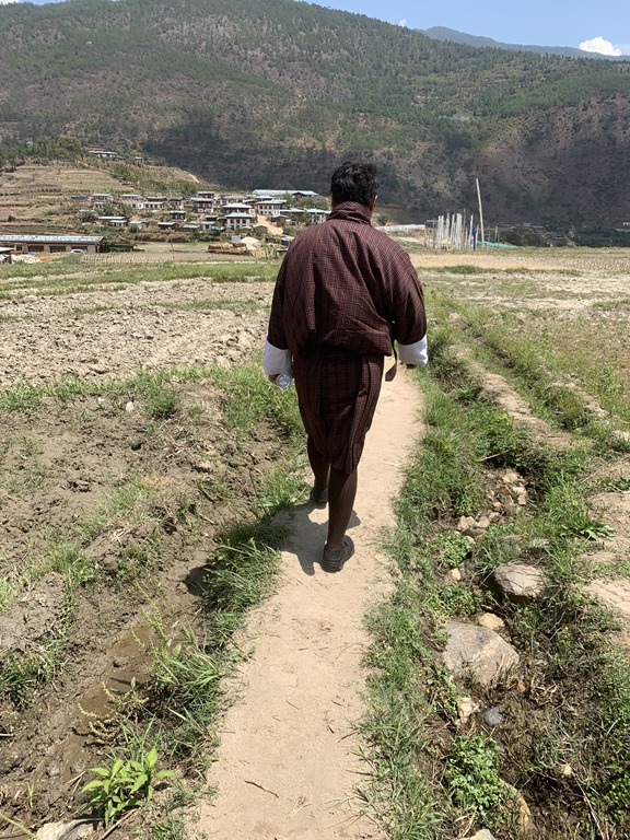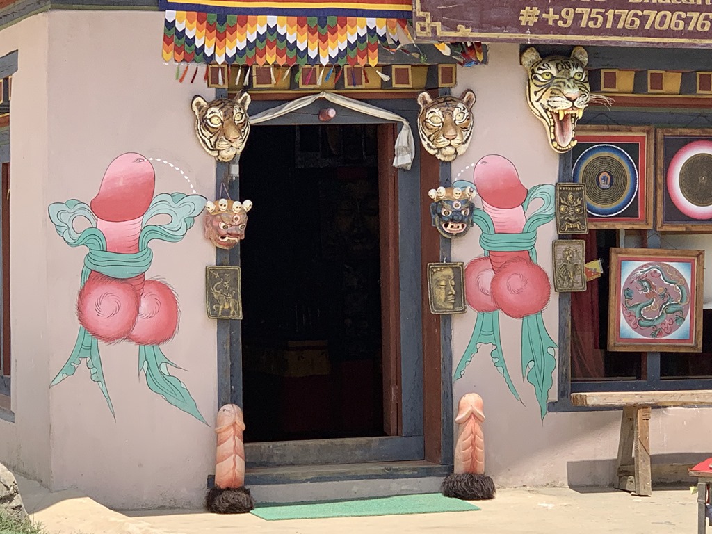 As we reached the town, Tashi led us on a hike through the rice and wheat fields.  This is the area of the Chime Lhakhang or the “Temple of Fertility” which we visited after our hike.  On the way, we started to see the many phalluses that are painted on many buildings, and replicas are in most shops.