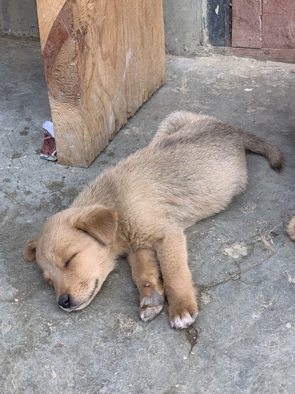 There are lots of dogs everywhere, Tashi says they are all vaccinated for rabies.  They seem to sleep all day and bark all night.  Loved this little puppy!