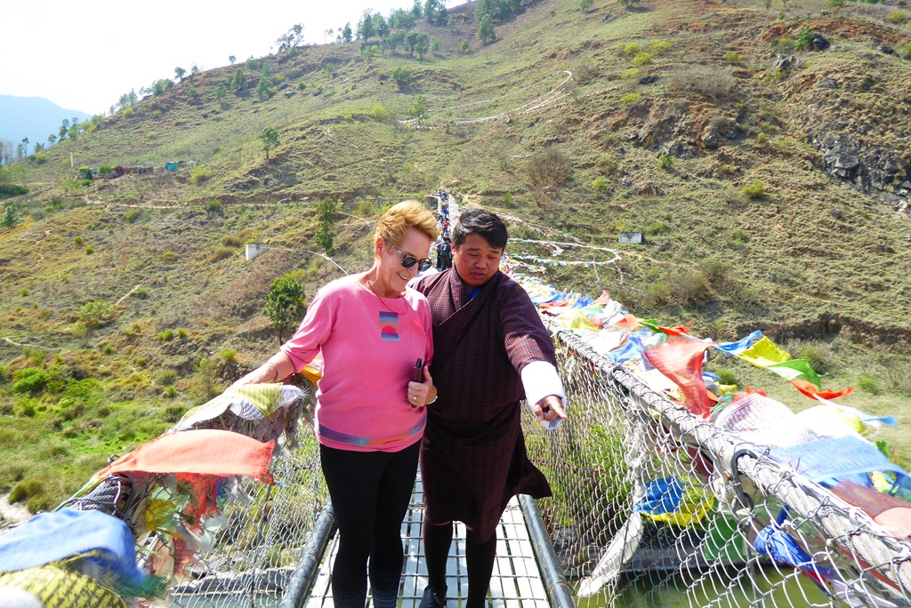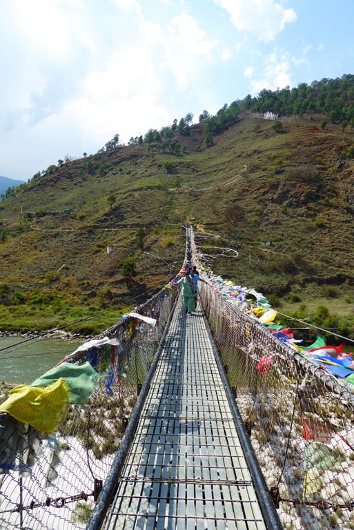 From the restaurant, we visited the longest suspension bridge in Bhutan. It is 180 meters long and spans the Po Chhu river. Tashi said Norm directed him to make this heart below the bridge, but of course he was joking!