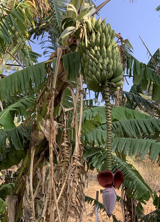 Here are some pictures from our breakfast table window and from around the grounds. The banana and lime trees were cool.