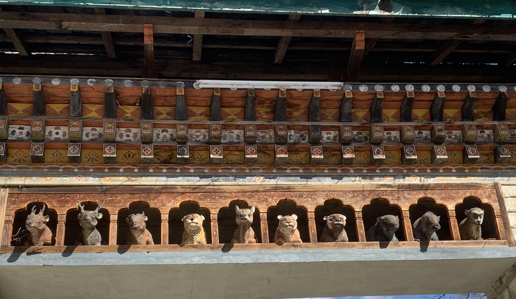 After our lunch in Paro, we went to the museum. We had to wait a while because they had a power outage. The actual museum was damaged in the 2011 earthquake and is being renovated, so the contents were moved to a nearby building. They actually make you put your cameras and phones in a locker here, no photos inside. It was really interesting, with walls of all the masks used in the dances and lots of information about the birds and animals in Bhutan.