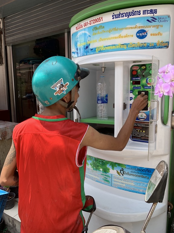 Here are some other sights we saw. The bakery with my name! The German bakery. And the kiosks to fill water bottles. And Thai food. Which would be common in Thailand, I guess! Perhaps the sign is for us visitors.