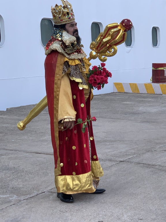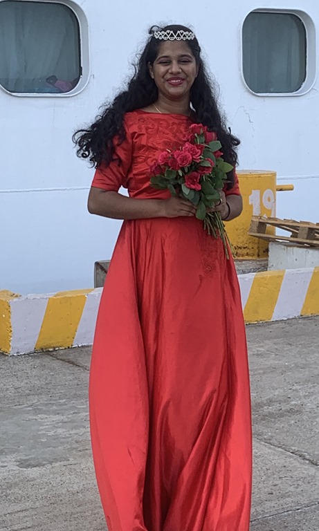 Ray, our cruise director, is getting everyone prepared for the big Indian deck party on May 10. Tonight at the show he appeared in his new outfit that he said he bought in Mangalore for the US price of $43. He also announced that the party will include the crew! Fabulous idea.